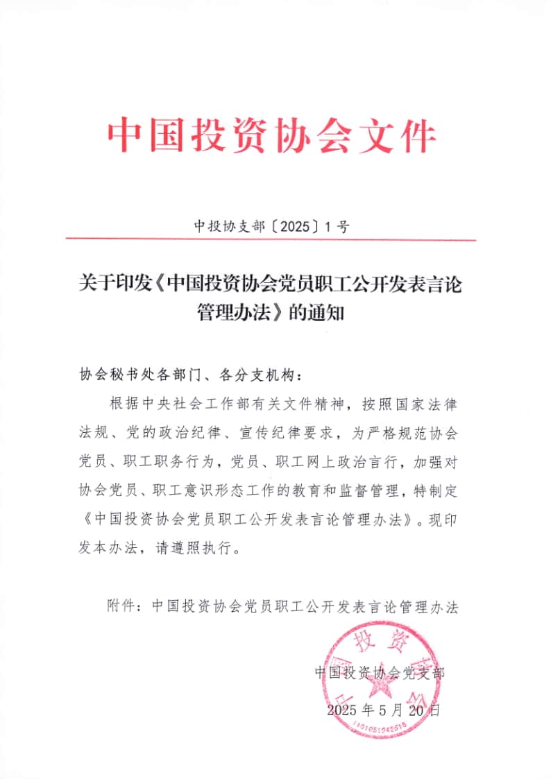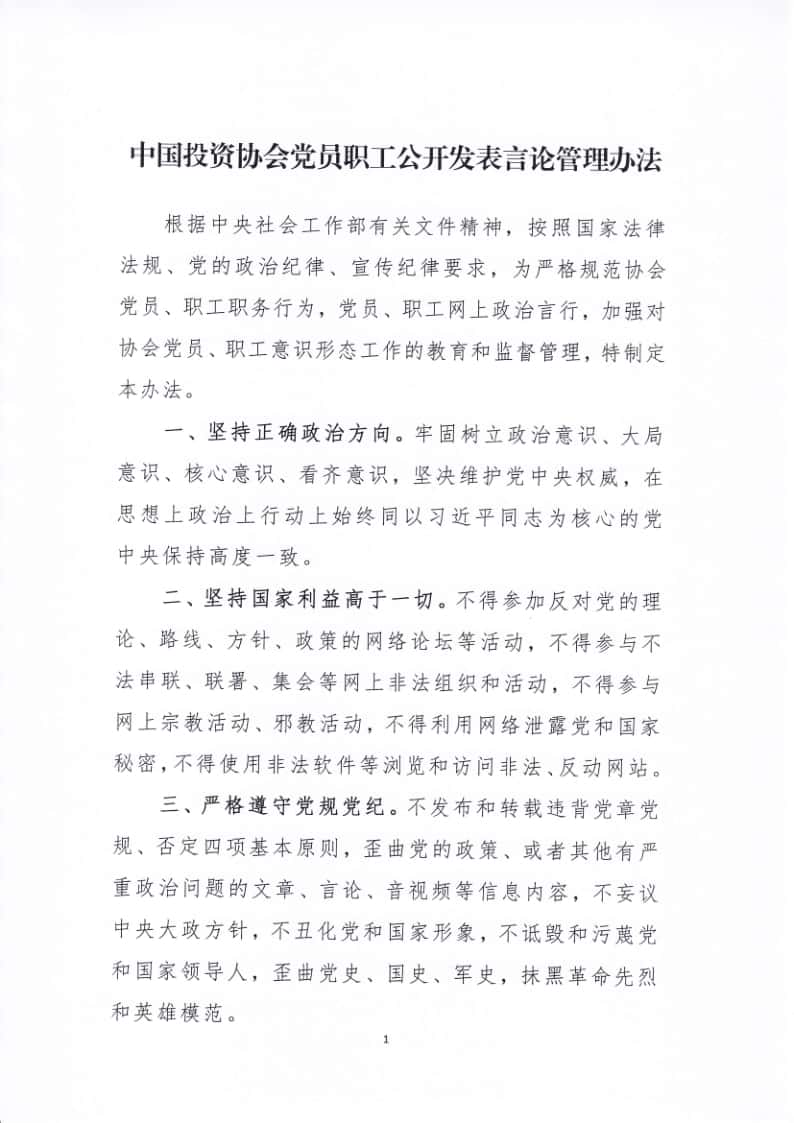 关于印发 《中国投资协会党员职工公开发表言论管理办法 》的通知
